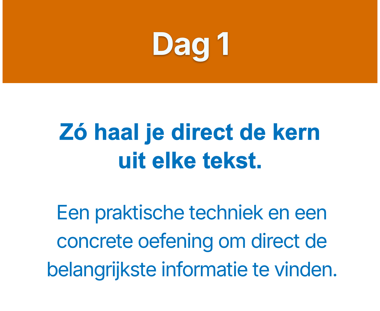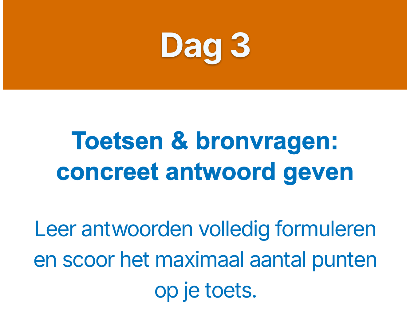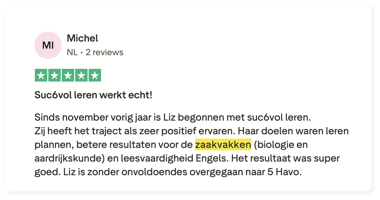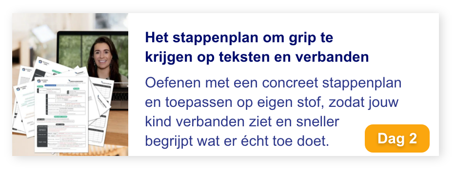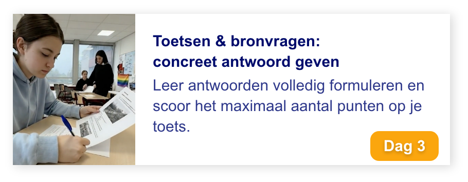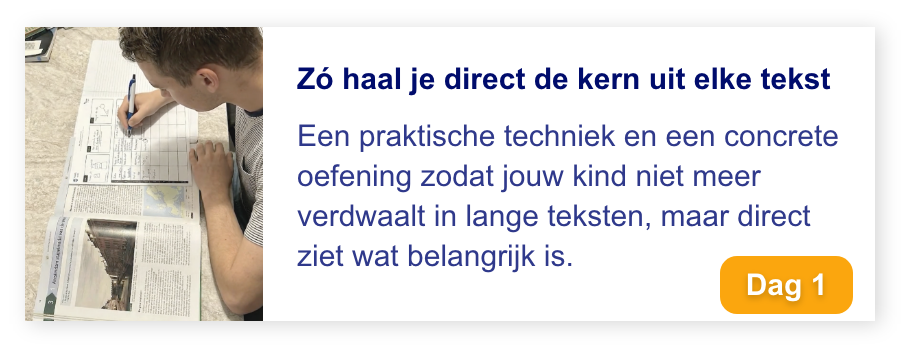 Elke dag krijg je een korte video van 10–15 minuten met een concrete tip, plus een oefening die je kind direct kan toepassen op zijn of haar leerwerk. Effectief, overzichtelijk en goed te combineren met schoolwerk.